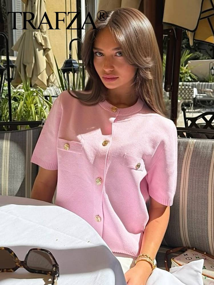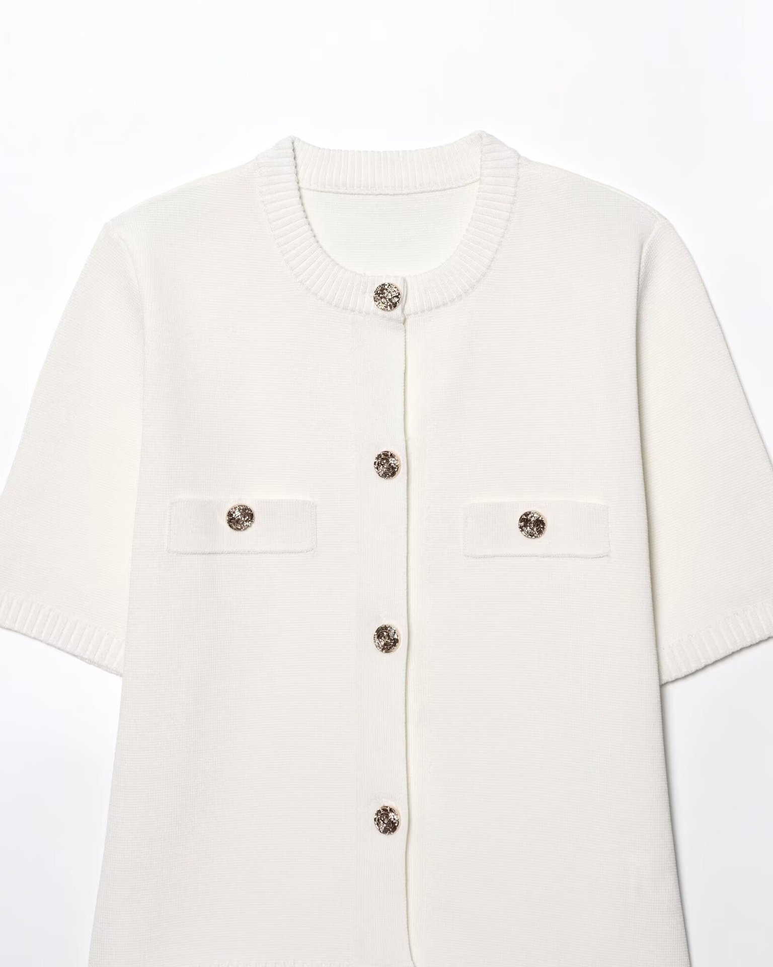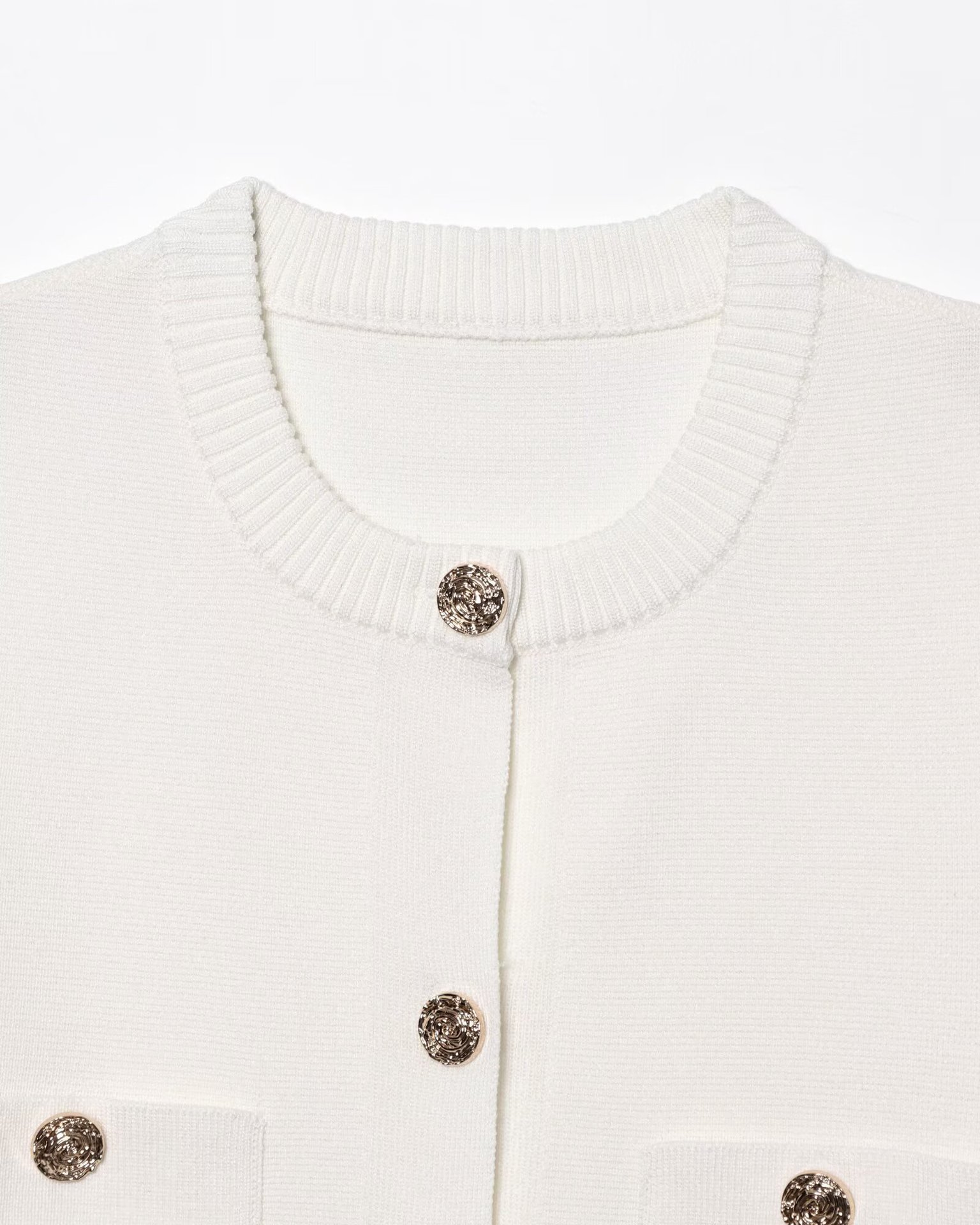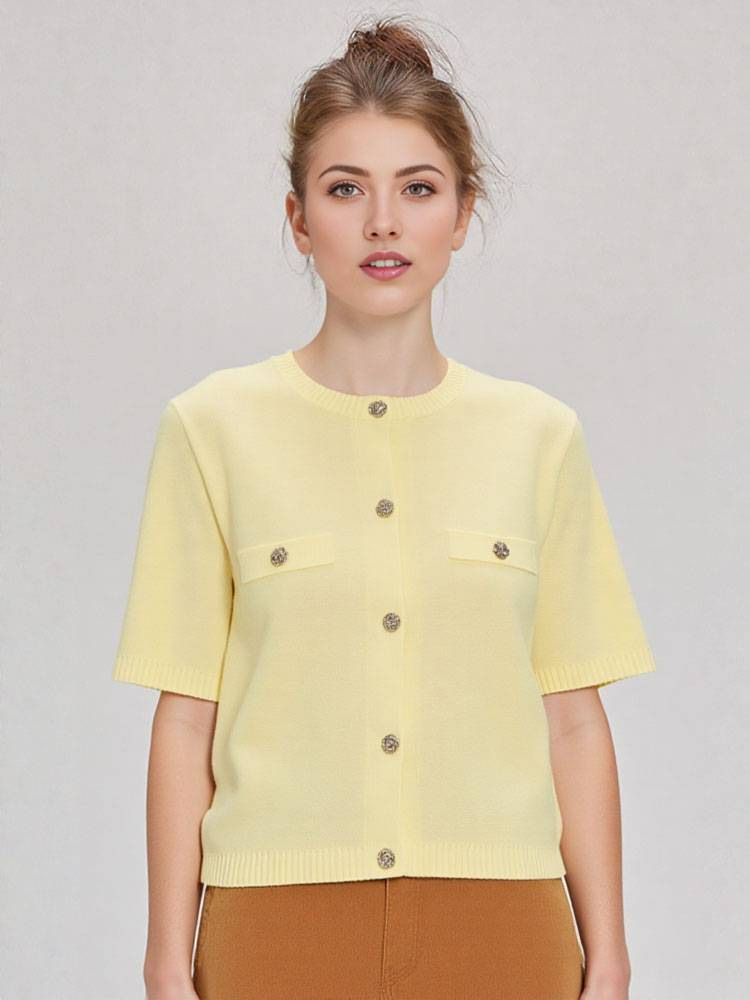 Polyester Women's Spring And Autumn Round Neck Knitted Cardigan Top