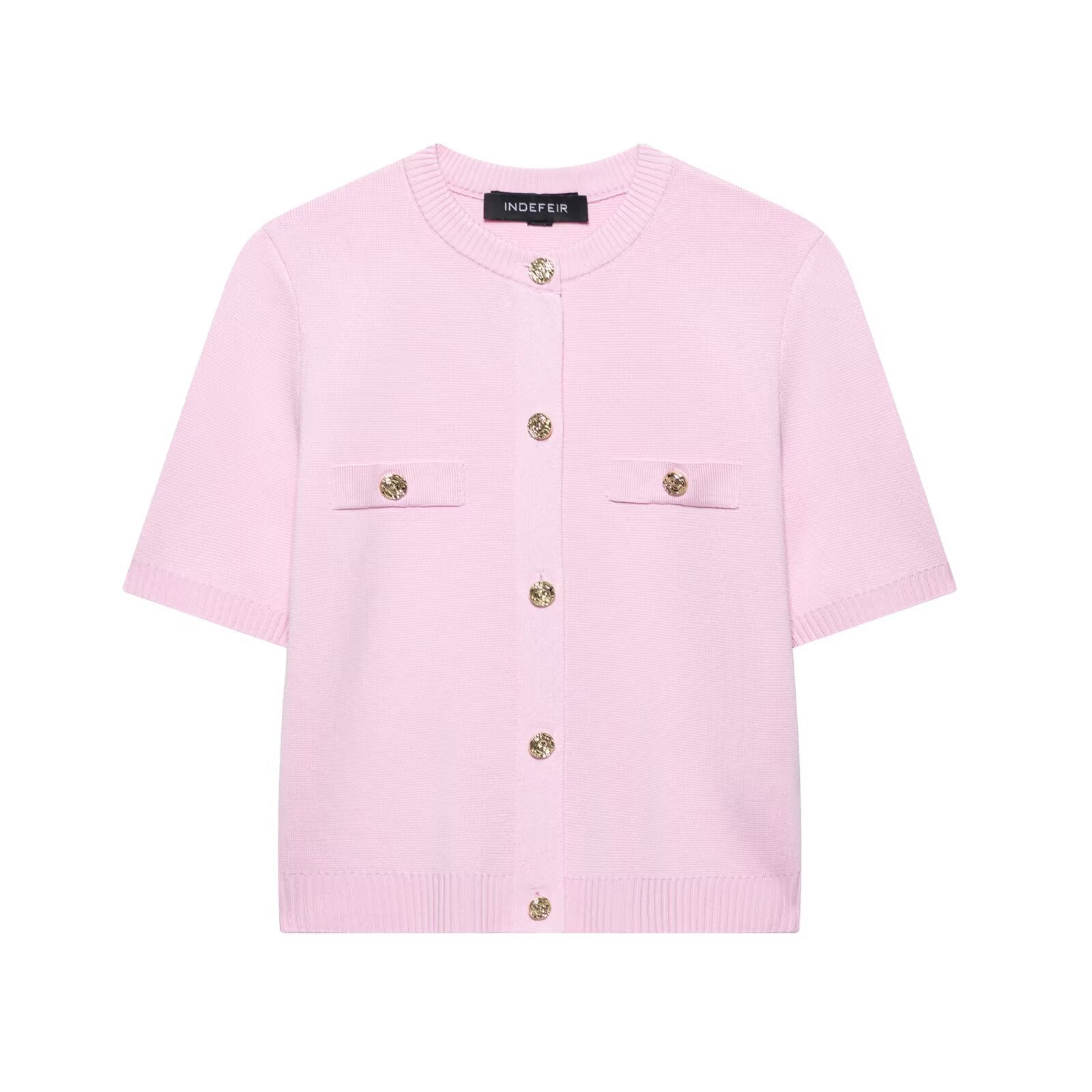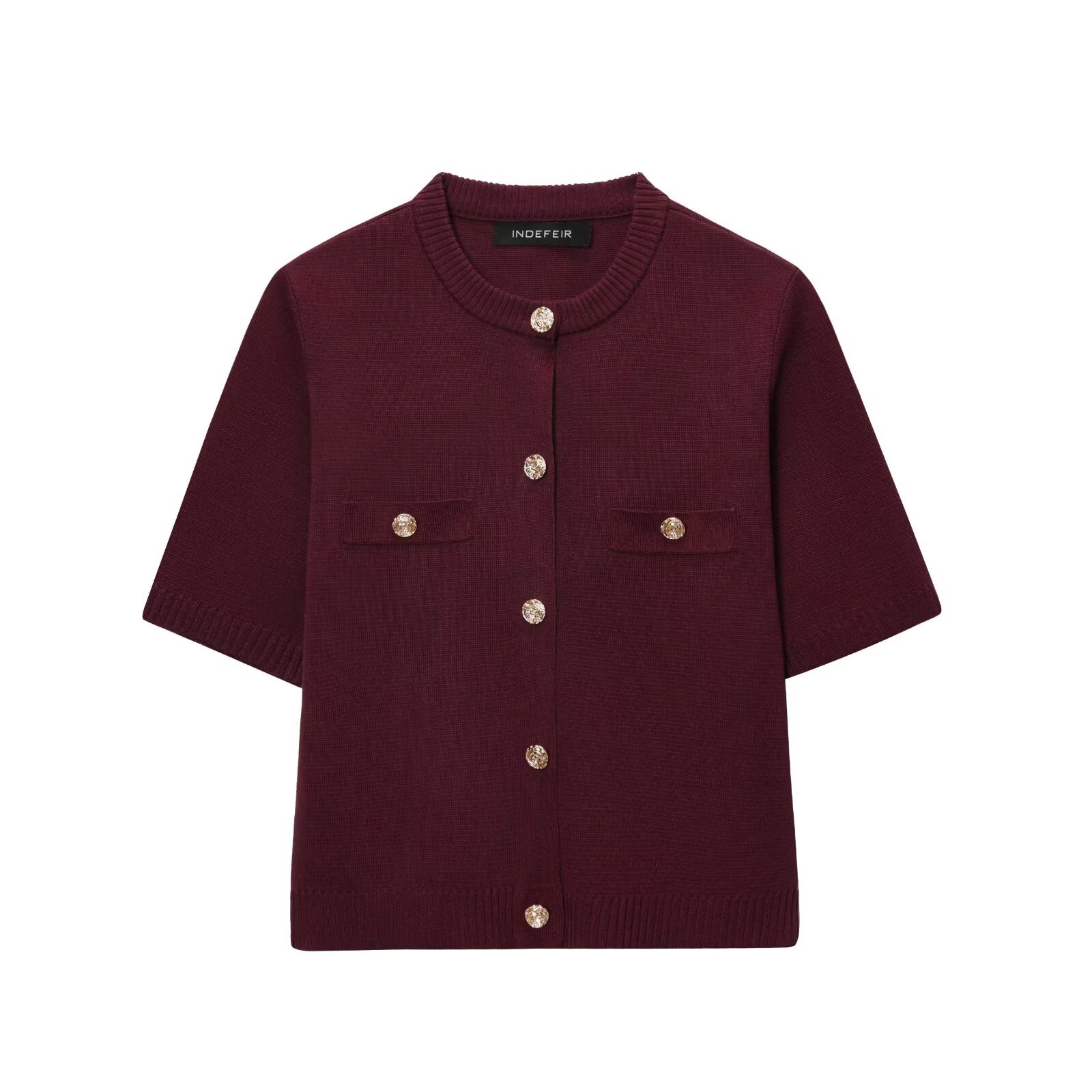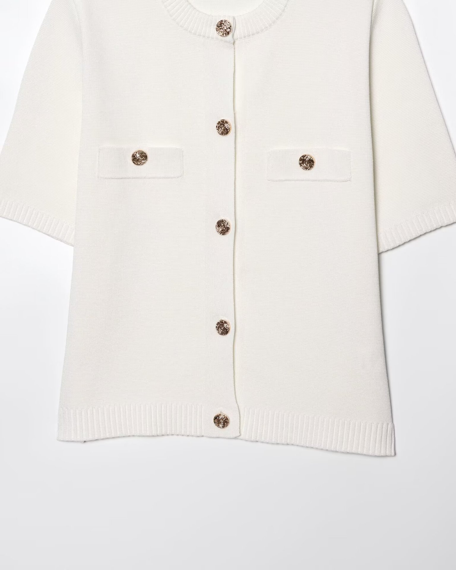Polyester Women's Spring And Autumn Round Neck Knitted Cardigan Top