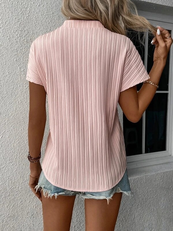 Summer Women's Top Solid Color And V-neck Striped Short Sleeve