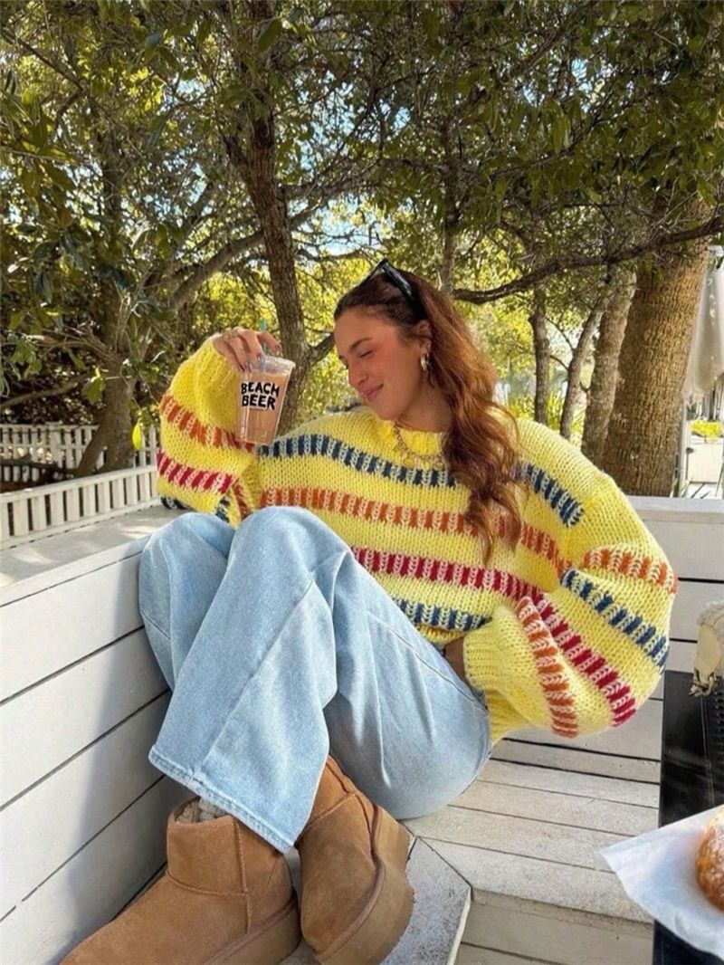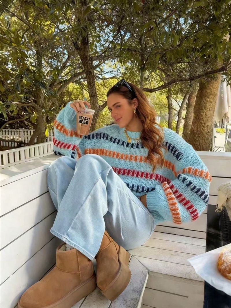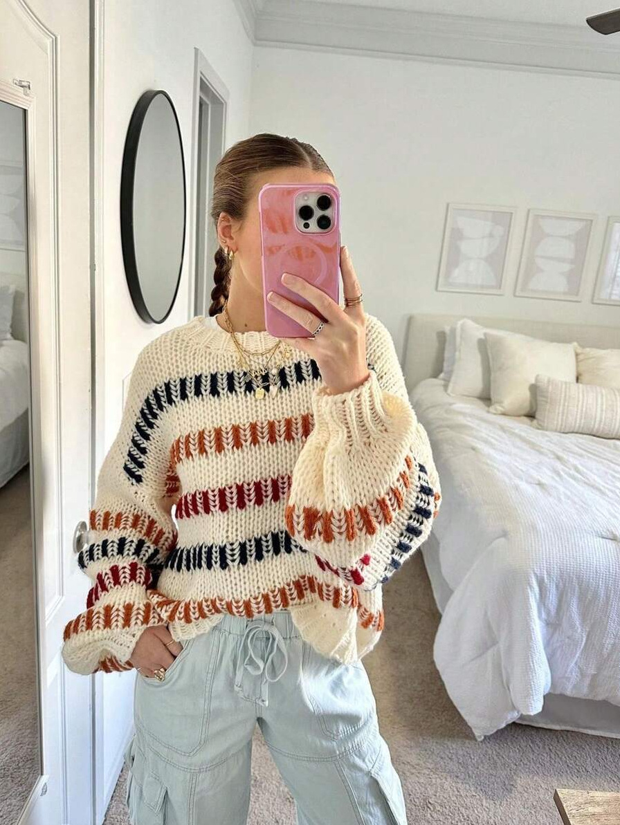 Casual Fashionable Retro Loose-fit Sweater With Batwing Sleeves
