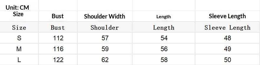 Sizes: S, M, L
