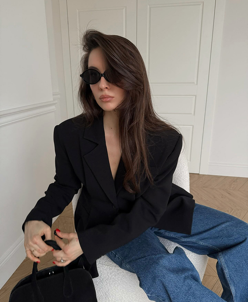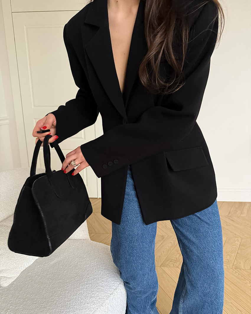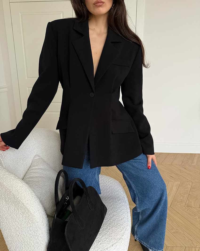 Commuter Retro Black Small Business Suit Coat For Women 2025 Autumn And Winter