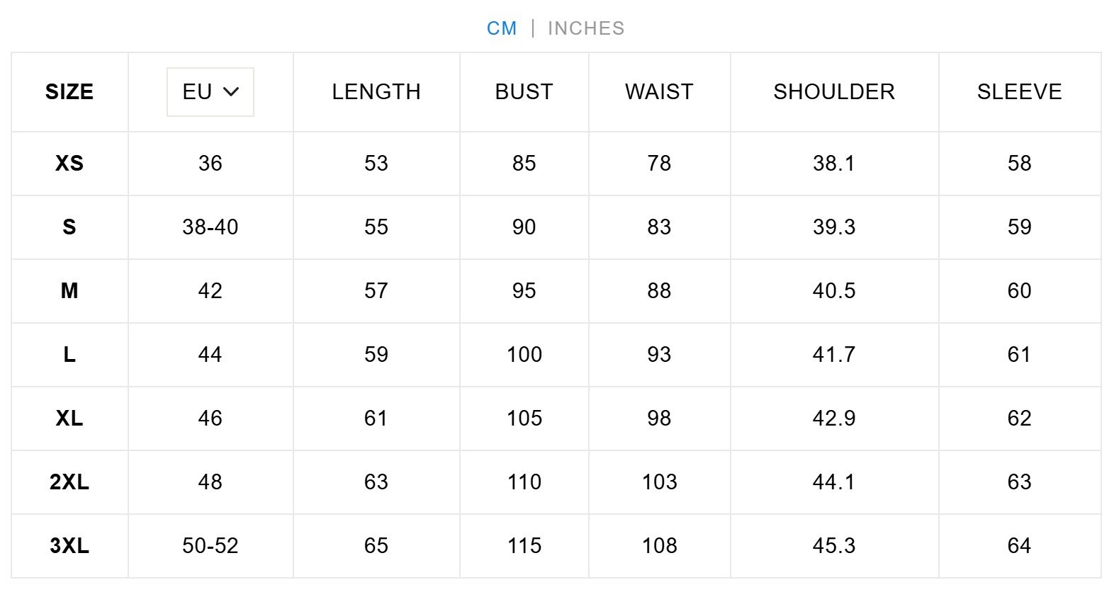 Size: XS,S,M,L,XL,2XL,3XL