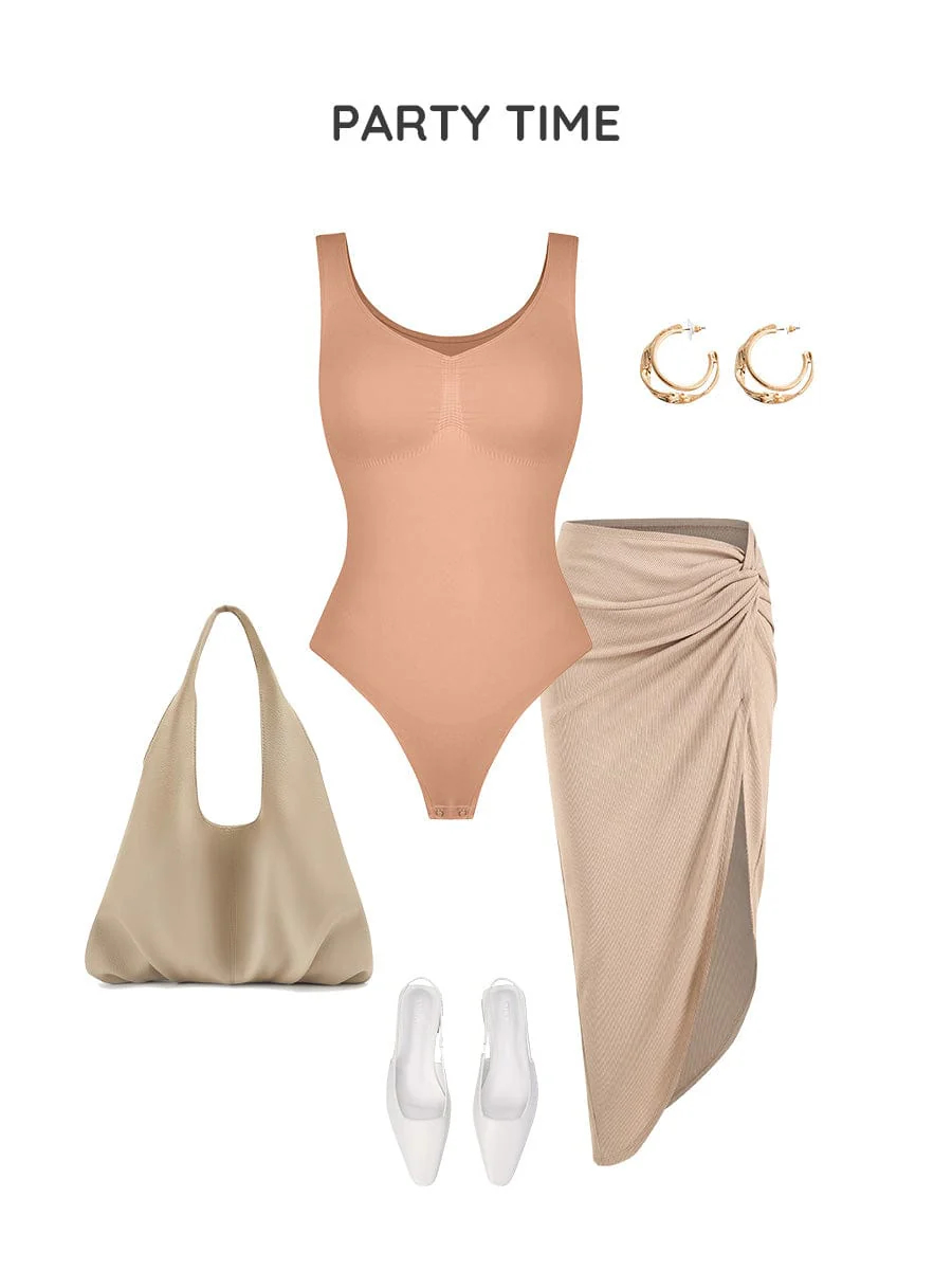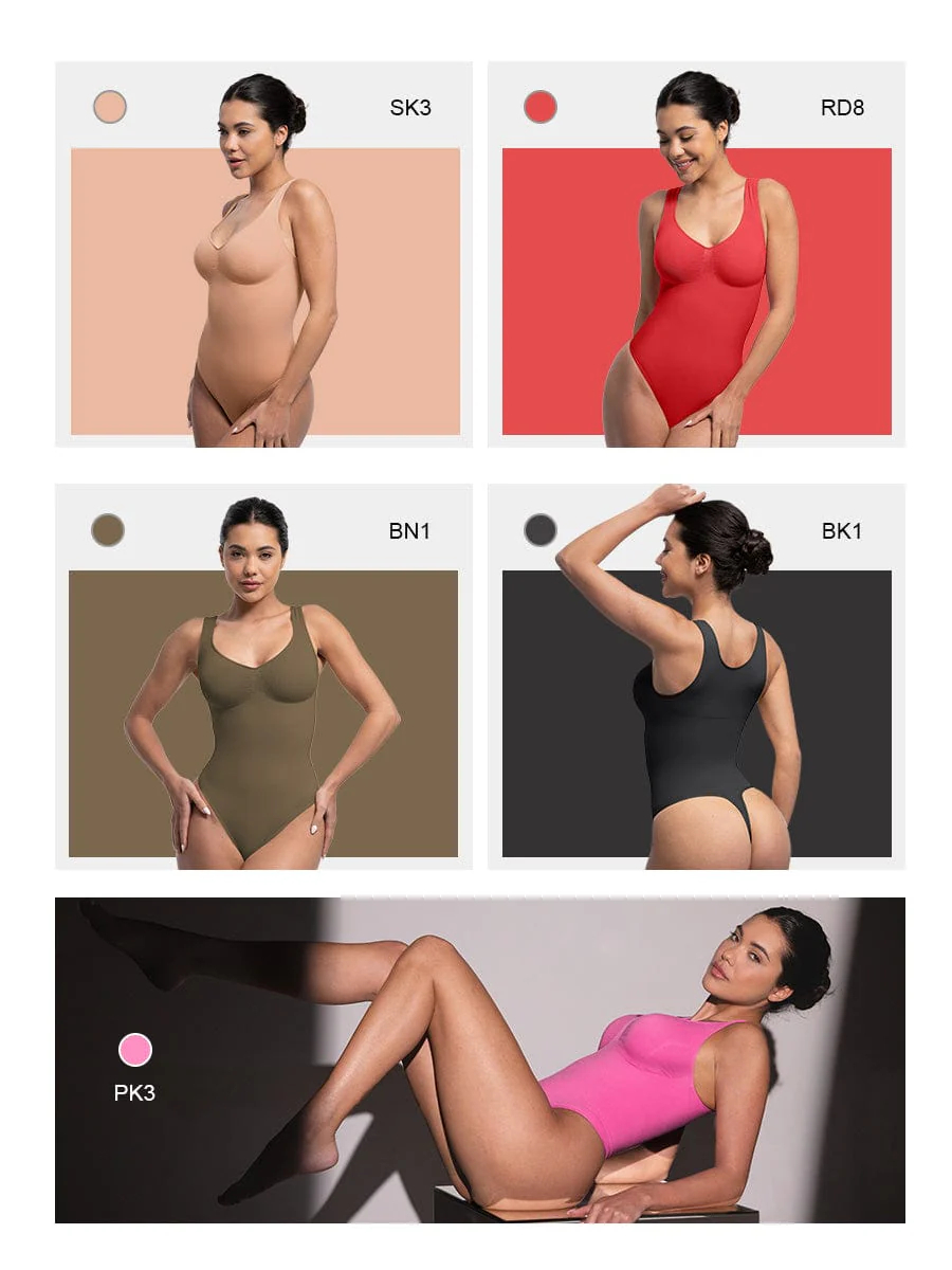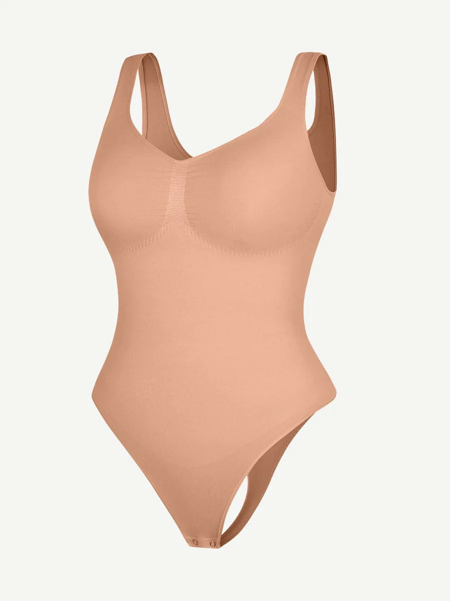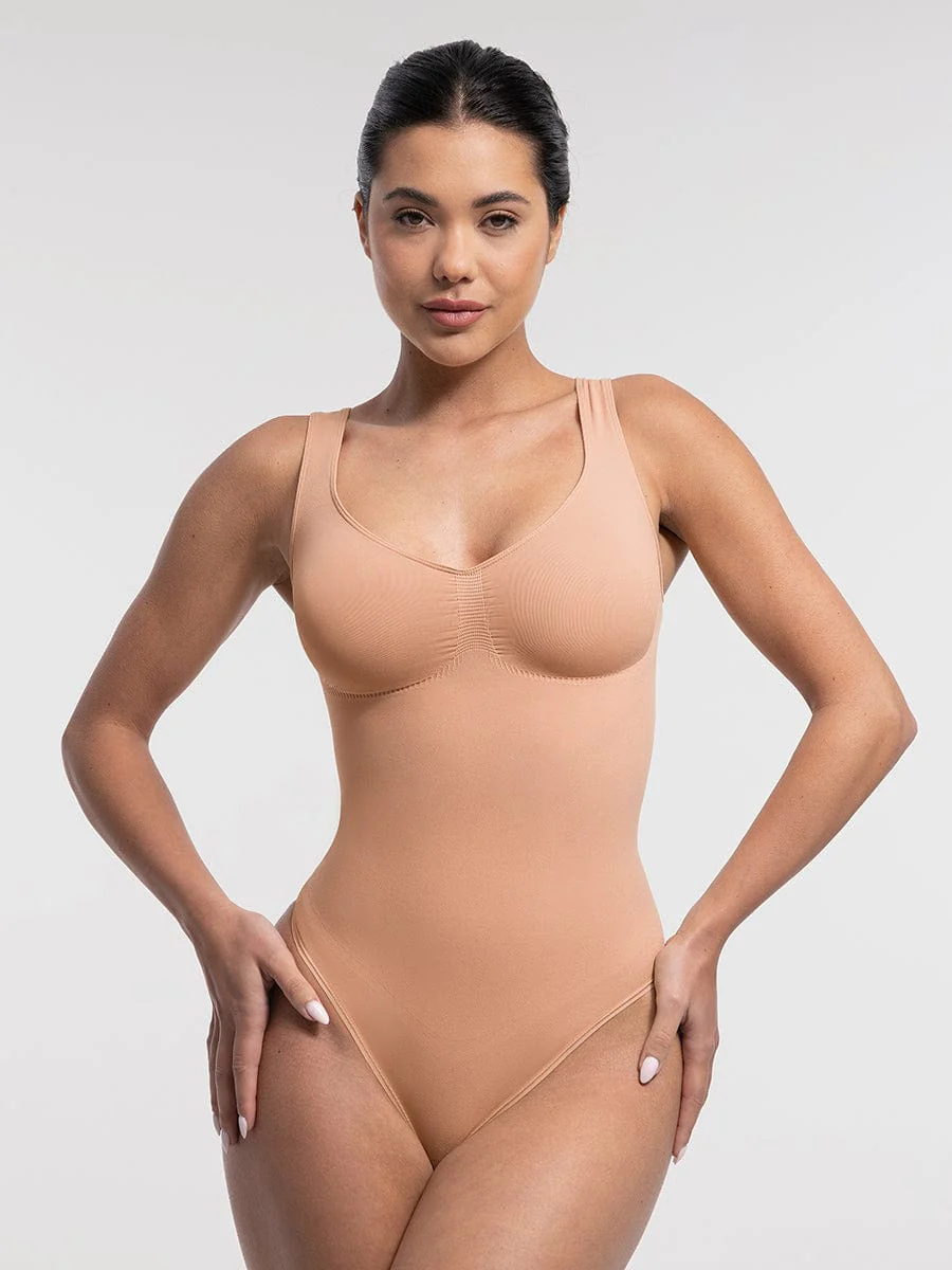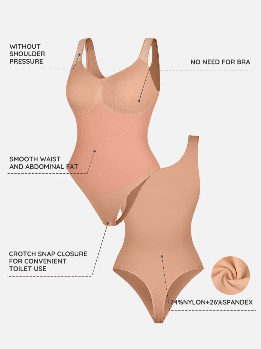 Seamless Bust Support Waist And Abdomen Control Thong Bodysuit