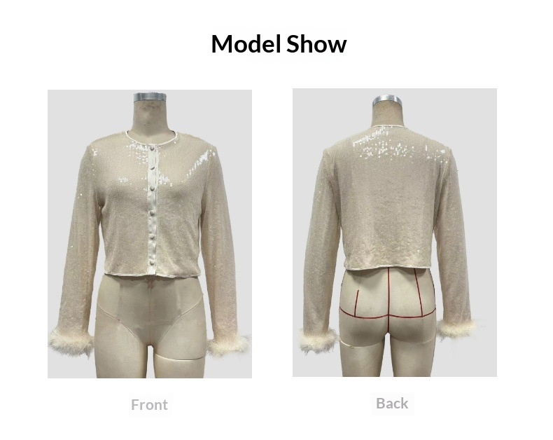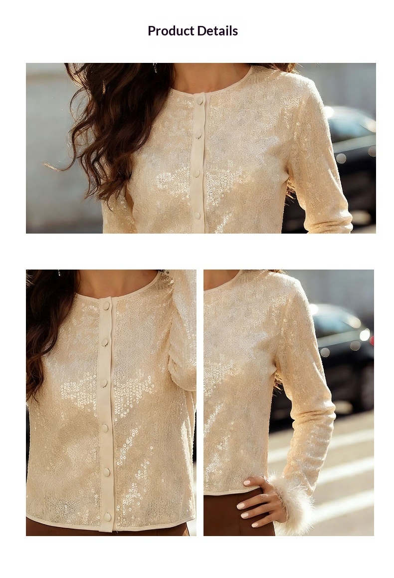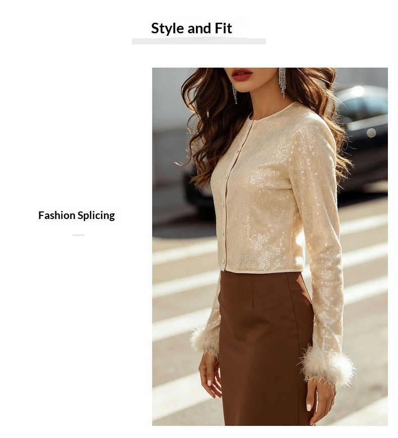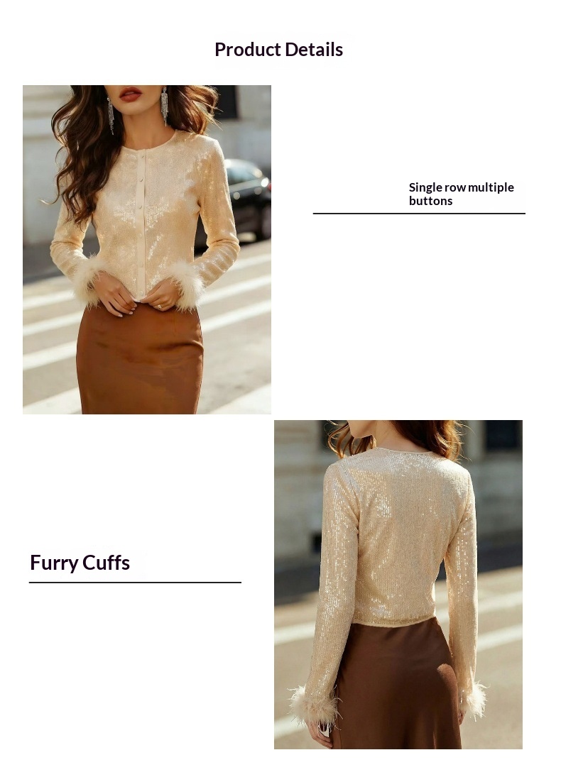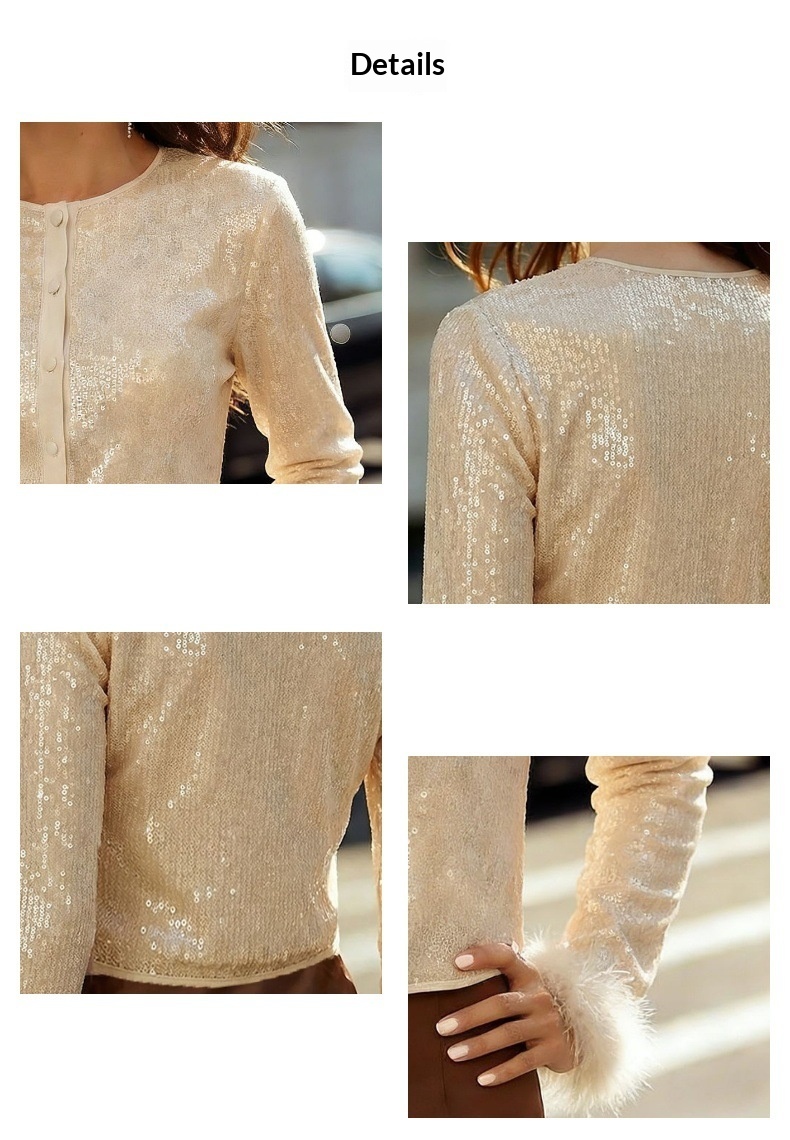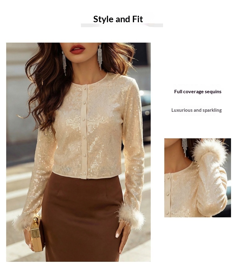 Sequined, Fluffy-sleeved Crew-neck Cropped Top
