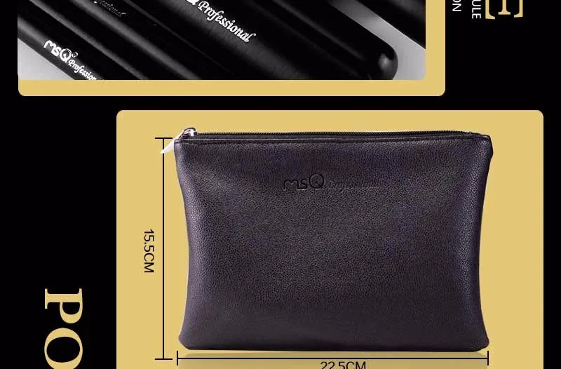 MSQ 15pcs Pro Makeup Brushes Set Powder Blusher Eyeshadow Blending Make Up Brushes High Quality PU Leather Case