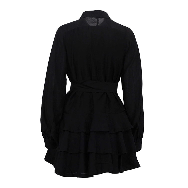 New Stylish Black Womens Dress With A Turn-down Collar For An Elegant