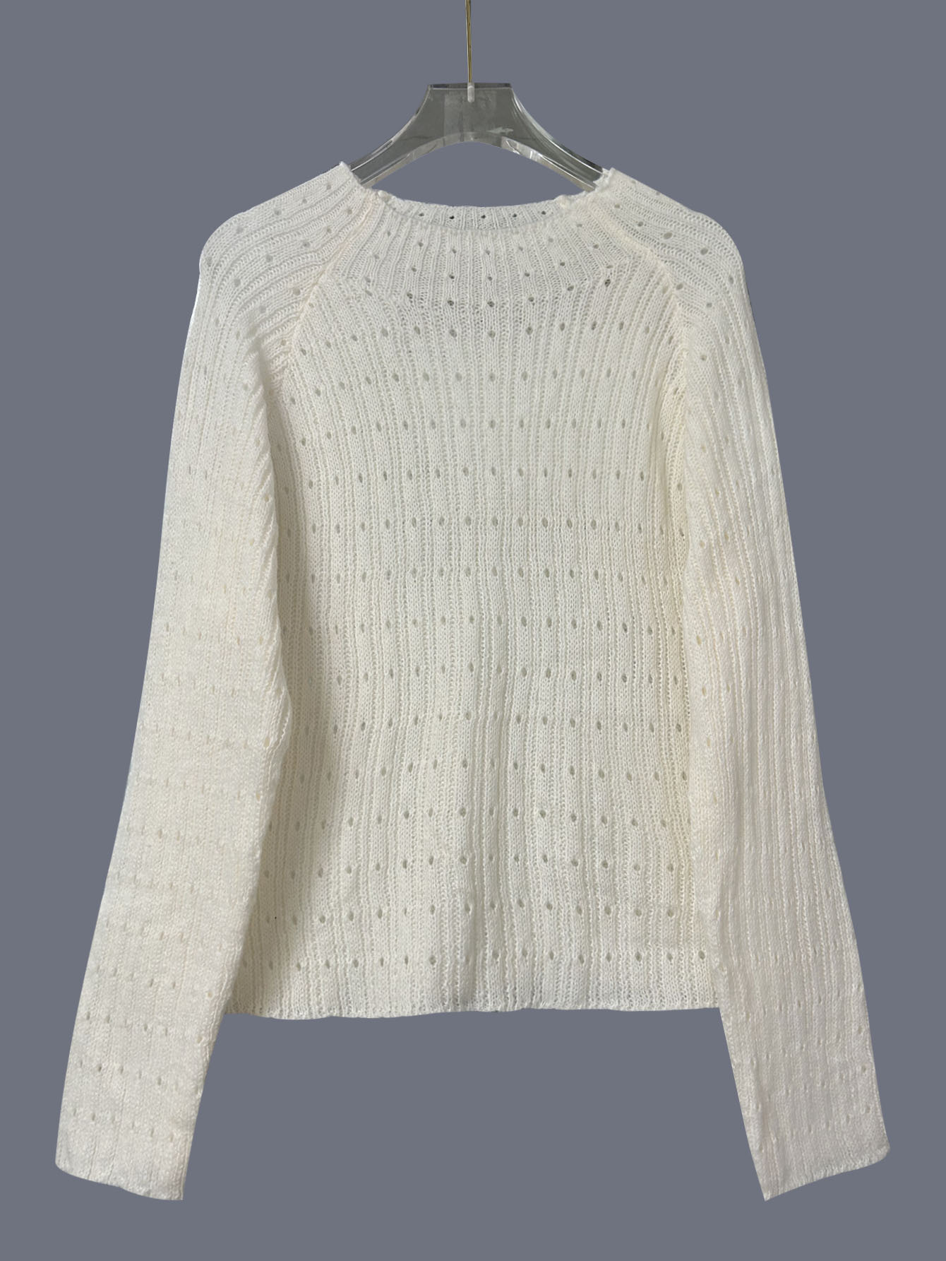 Laid-back Style Hollow-out Knitted Pullover With A Crew Neck