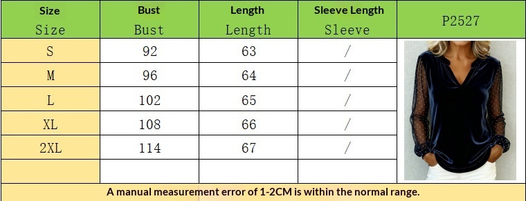 Women's V-neck Lace-Panel Long-Sleeve Velvet T-shirt