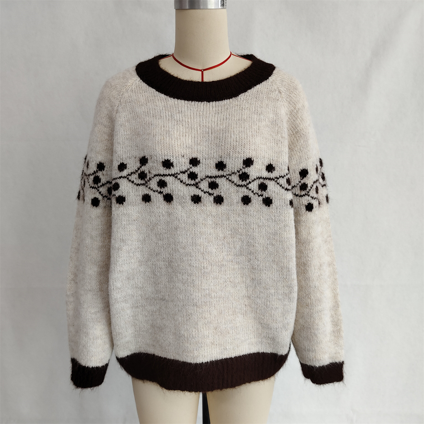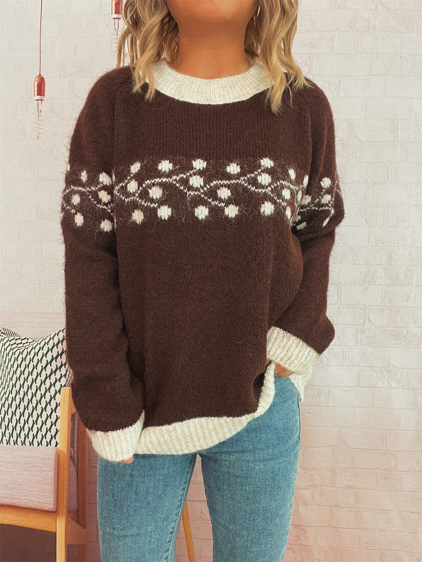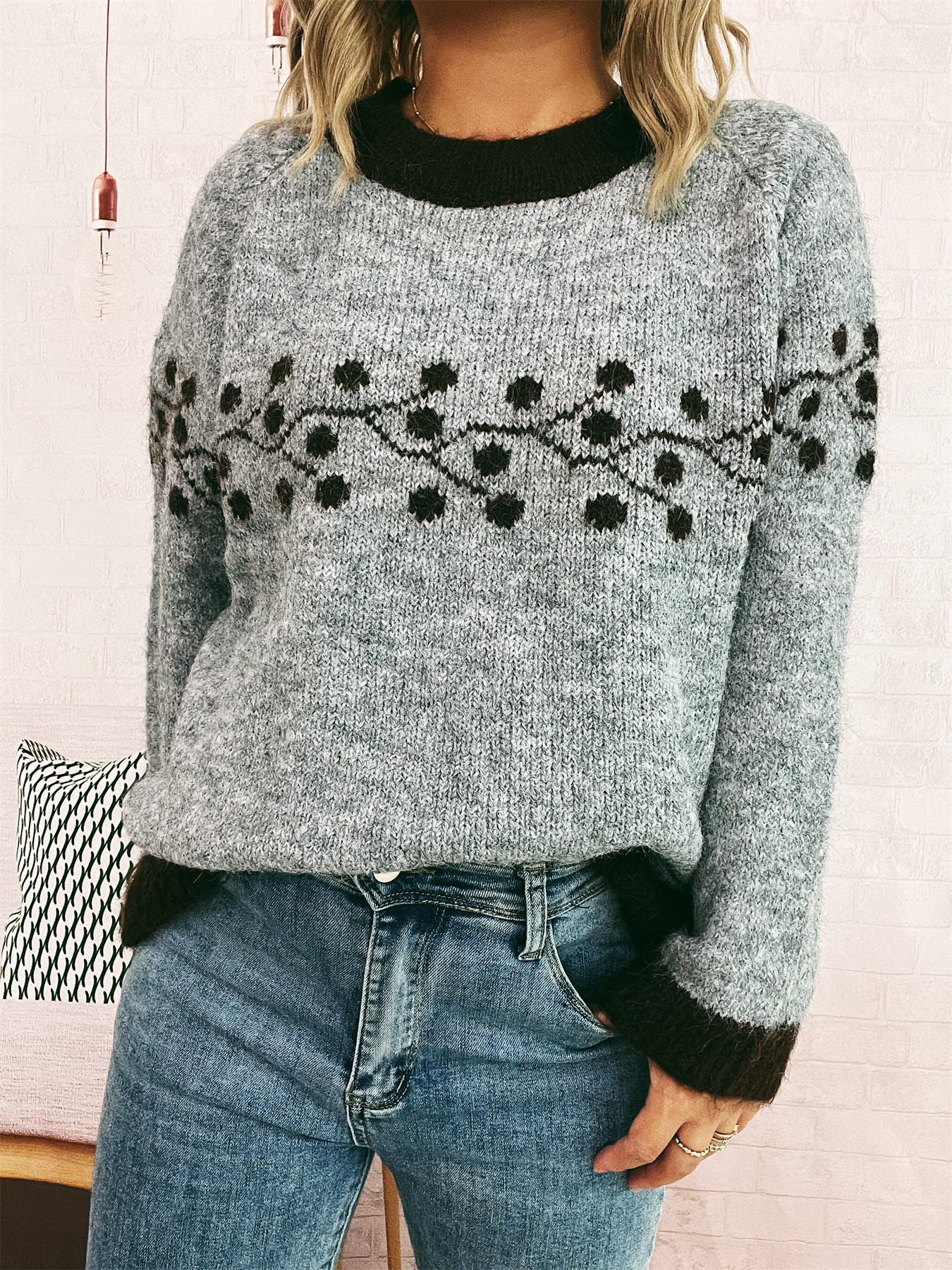 Autumn And Winter New Polka Dot Branch Jacquard Commute Leisure Sweater