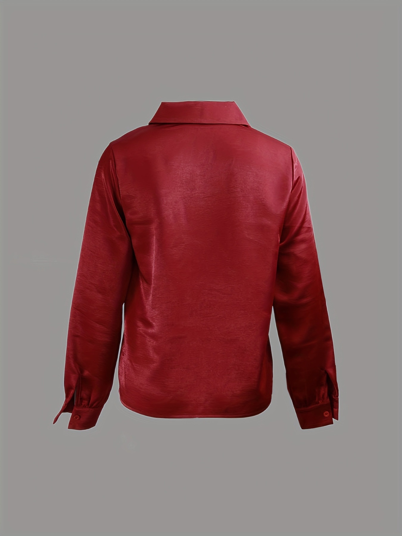 Elegant Solid-Color Minimalist V-Neck Long-Sleeve Shirt