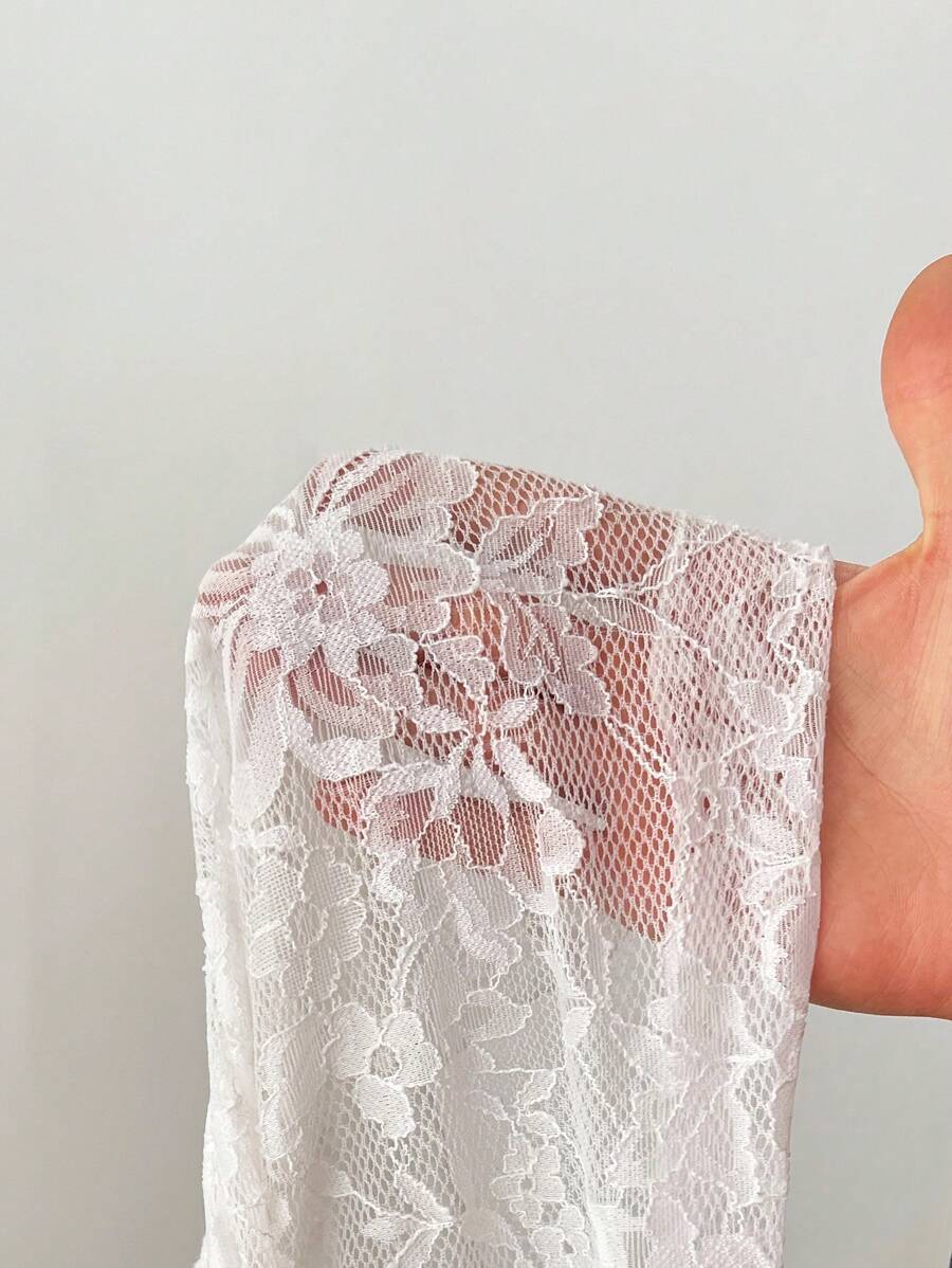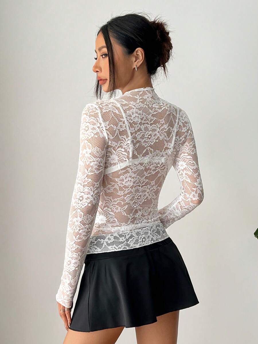 Women's Lace Elastic Peony Print Sheer Sexy Top