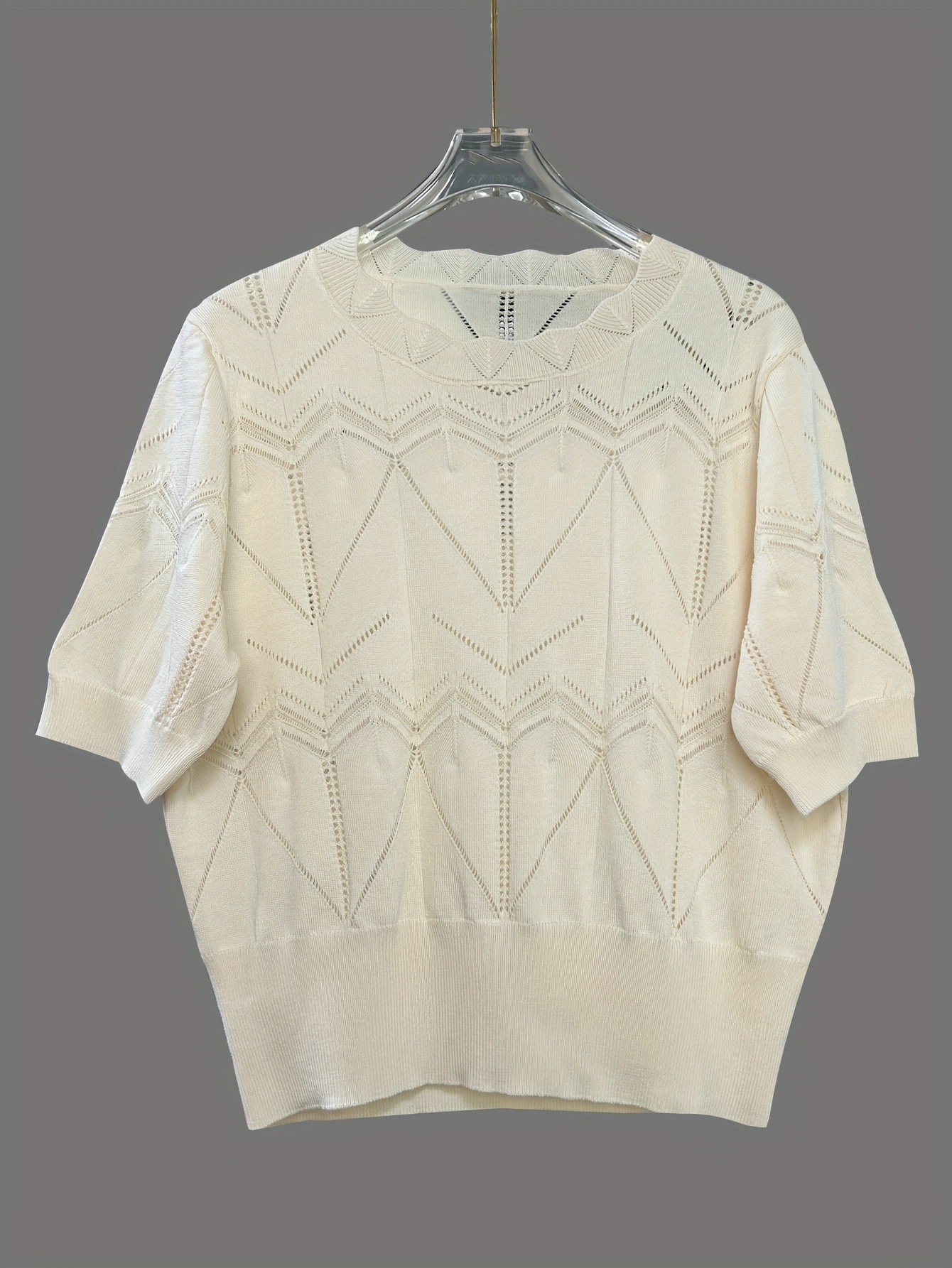 Womens Stylish Western-style French Crochet Hollow-out Short-sleeve Knit Pullover